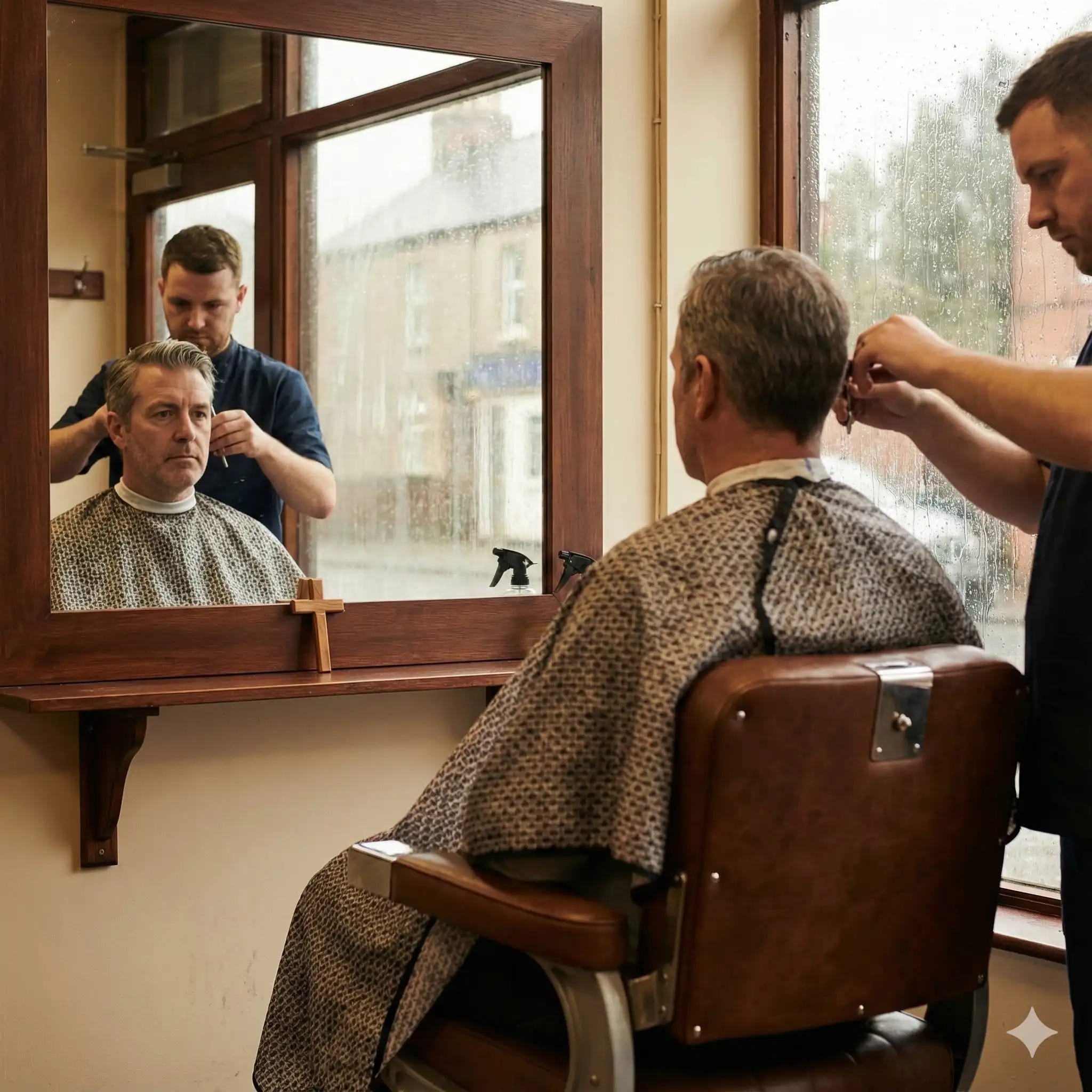 He stopped cutting for a moment, met my eyes in the mirror, and asked a question that stopped me in my tracks.